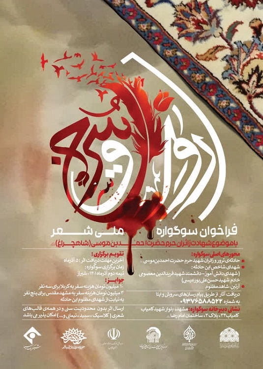 فراخوان سوگواره ملی شعر «رواق سرخ» با موضوع شهادت زائران حرم حضرت احمد بن موسی(شاهچراغ) علیهالسلام اعلام شد.