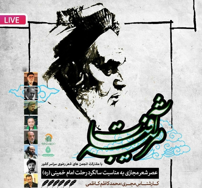 به مناسبت فرا رسیدن سالگرد رحلت امام خمینی(ره)، عصر شعر مجازی «مرثیه آفتاب» از سوی انجمن ادبی رضوی مؤسسه آفرینش های هنری آستان قدس رضوی برگزار می شود.