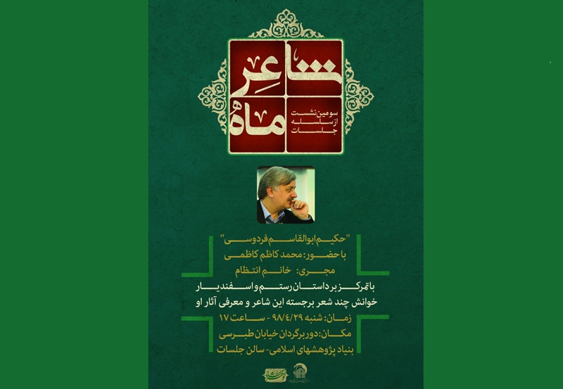 به همت انجمن ادبی بانوان رضوی مشهد سومین نشست «شاعر ماه» با محوریت فردوسی در جوار حرم رضوی برگزار می‌شود - ۱۳۹۸/۰۴/۲۹