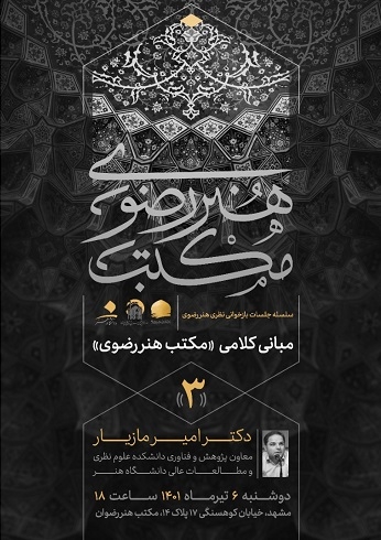 دکتر امیر مازیار در این نشست که با محوریت «مبانی کلامی مکتب هنر رضوی» بعدازظهر دوشنبه ششم تیرماه در مکتب هنر رضوان در مشهدمقدس برگزار شد، با طرح پرسش‌هایی درباره مفهوم هنر رضوی و جایگاه مکتب رضوی در هنر اسلامی اظهار کرد: وقتی می‌توان از مکتب هنر رضوی صحبت کرد که قبول کنیم هنر اسلامی در عین هویت خاص خود دارای تنوع، تکثر و تاریخ‌مندی است.