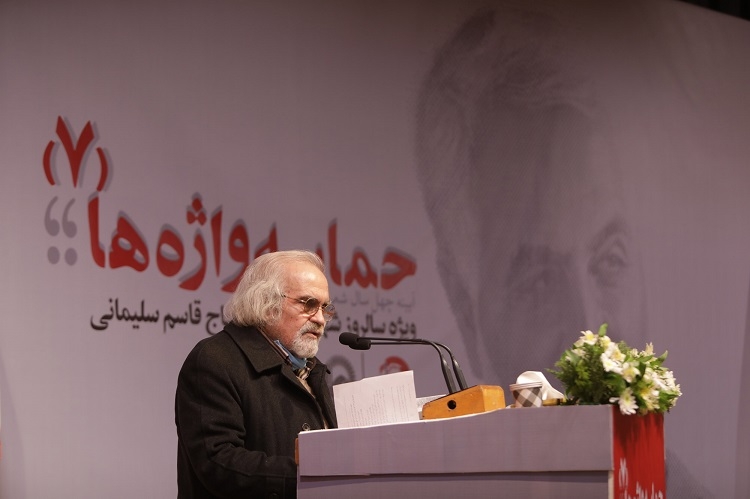 چراغ هفتمین برنامه شعرخوانی «حماسه واژهها؛ آیینه چهل سال شعر فارسی» در آستانه دومین سالگرد شهادت سردار حاج قاسم سلیمانی و ایام شهادت حضرت فاطمه زهرا(س) در مشهدمقدس روشن شد و شاعران برجسته کشور با زمزمه اشعار خود عرض ارادتی به پیشگاه این سردار شهید کردند.