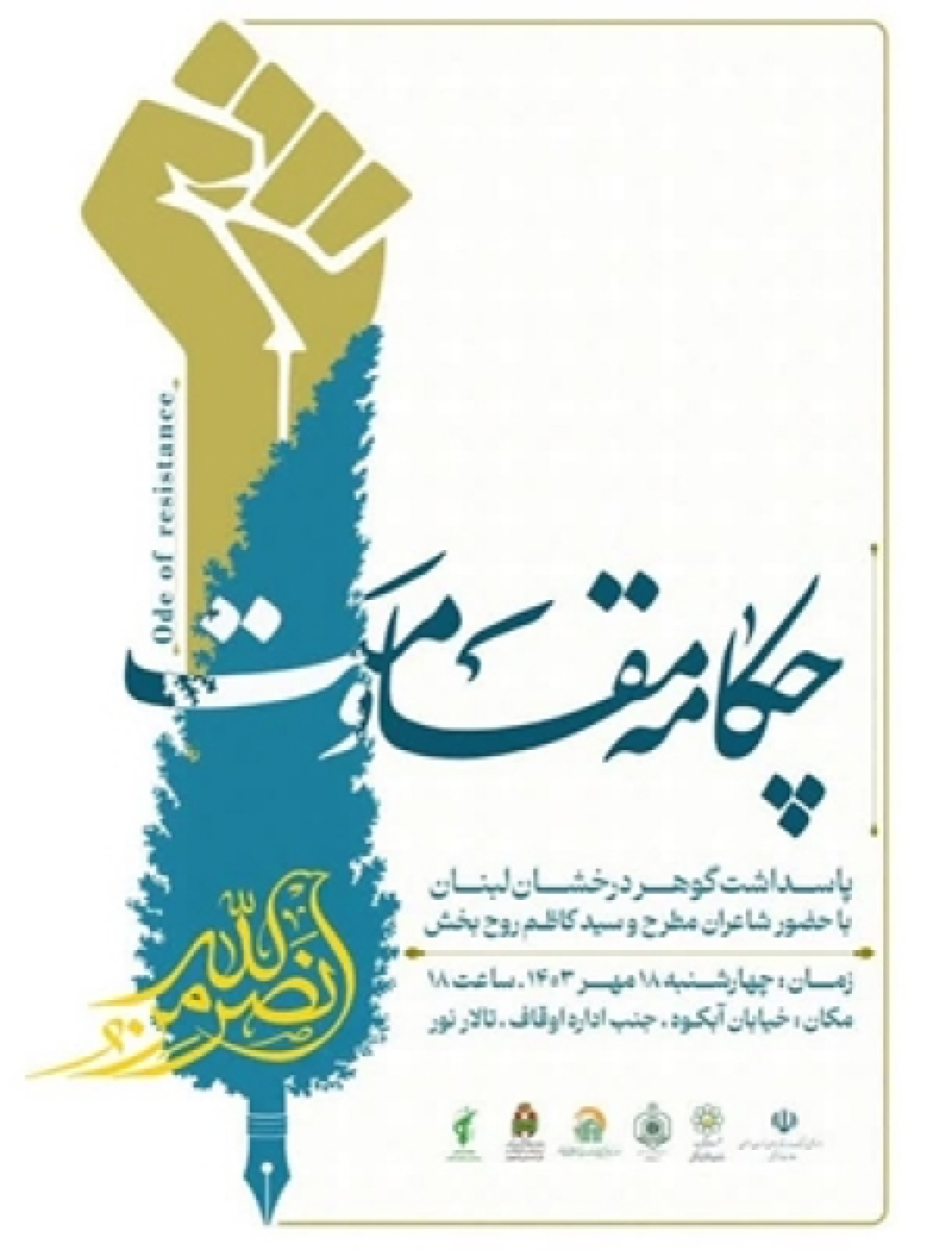 جمعی از شاعران مطرح کشور و استانی از جمله سید کاظم روحبخش و علاقهمندان به شعر و ادب در این نشست ادبی که با هدف خلق اشعار ناب با موضوع مقاومت و شهادت، رشد و شکوفایی اشعار و ادبیات در خصوص سبک زندگی شهدای مقاومت و پاسداشت شهدای درخشان لبنان برگزار میشود، به شعر خوانی خواهند پرداخت.