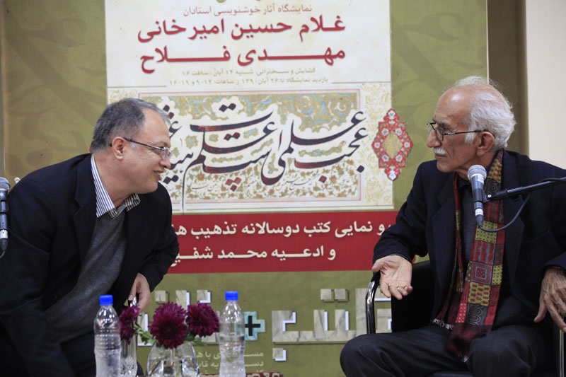 محمد ضرابی ادامه داد: دوسالانه تذهیبهای قرآنی که سال گذشته دومین دوره آن و سال آینده سومین دورهاش برگزار خواهد شد، امروزه جایگاه ویژهای در عرصه تذهیبهای ایرانی دارد. استقبال پرشور هنرمندان سبب شد تا در سال آینده یک کار پژوهشی را در مورد مکتب هنر تیموری که سالهاست مورد غفلت واقع شده، آغاز کنیم. وی با تاکید بر اینکه حرم مطهر رضوی گنجینهای از هنرهای ایرانی است، افزود: از اینرو سال آینده برآنیم کاملترین نشستی را که تاکنون در زمینه هنرهای رضوی به کار رفته، در مشهد برگزار کنیم. در بحث خوشنویسی هم با توجه به جمعیتی که من امروز میبینم و بهنظرم انقلابی در عرصه هنر به شمار می رود، موسسه آفرینشها آمادگی دارد که از وجود اساتید بزرگی مثل استاد امیرخانی در فرصتهای نزدیک تری استفاده کند. از نظر ما این شرایط مهیاست که مشهد میزبان اساتید بزرگ باشد. معرفی برگزیدگان مسابقه خوشنویسی «مکتب+خانه» که در ایام دهه کرامت برپا شده بود، بخش دیگر این مراسم بود که طبق نظر هیئت داوران این مسابقه(محمدعلی فراستی، کاظم خراسانی، هادی ذوالریاستین، محسن عبادی و محسن توسلی)، از میان 66هنرمند حاضر، از 7برگزیده این مسابقه تقدیر بهعمل آمد.براین اساس مصطفی سلیمی، احمد خانبابایی، محمد نخعی، حسن طالبی و مهدی سلیمانی برگزیدگان اول تا پنجم در سطح هنرجویان و علی طوسیثانی و طاهر نبیزاده برگزیدگان بخش اساتید معرفی، تجلیل و تقدیر شدند. محمدحسین کامیابی، عباس آگهی و ابوالفضل حامدی نیز از تقدیرشدگان این مسابقه بودند. در ادامه مراسم، نوبت به رونمایی دو کتاب تازه منتشر شده در موسسه آفرینشهای هنری آستان قدس رضوی رسید. کتاب «تذهیبهای قرآنی» که به معرفی آثار دومین دوسالانه جشنواره تذهیب های قرآنی میپردازد و کتاب «ادعیه ایام هفته» به خط محمدشفیع تبریزی که با خط نسخ و در سال1226 کتابت شده است، در این قسمت با حضور استاد امیرخانی و استاد فلاح رونمایی شدند. نمایشگاه «سر عشق» با حضور و سخنرانی استاد ارشد خوشنویسی ایران، غلامحسین امیرخانی و استاد مهدی فلاح، عصر شنبه با حضور جمع کثیری از علاقه مندان به خوشنویسی در نگارخانه رضوان افتتاح شد. استاد امیرخانی در ابتدای صحبت خود با تشکر از استقبال و حضور هنرمندان و علاقه مندان خوشنویسی در آیین گشایش این نمایشگاه گفت: مقوله هنر آن طور که ارزش و اعتبار دارد در کشور ما جدی گرفته نمیشود. از لحاظ آن مدیریتی که همه بضاعت هنر و خواست و عشق مردم را پاسخگو باشد، شاید گوشهای از این خواست را پاسخ بدهد اما اگر بخواهیم هنر به آن معنای بسیار عمیق و پرورشدهنده خود در جامعه ریشه پیدا کند و در شخصیت ما حضور یابد و کمک کند به اینکه تلطیف قلوب صورت بگیرد، باید مناسباتمان انسانیتر باشد. این خوشنویس برجسته با تاکید براینکه وقت به هیچعنوان در اختیار ما نیست، تصریح کرد: از آنجا که نمیتوانیم وقت را وسعت بدهیم، پس چگونه باید با خودمان رفتار کنیم در این عمری که برای کسب فضیلت هنر واقعا کوتاه است؟ در زمینه تلمذ هنر مکتب شرق به خصوص هنر ایرانی صرف یک عمر لازم است، چه کنیم با عمر؟پیشنهاد من این است که ما باید خودمان را مدیریت کنیم. اگر بتوانیم خودمان را مدیریت کنیم، شاید که رضایتخاطری فراهم بشود. وی ادامه داد: خوشنویسی بهعنوان یک هنر تاریخی، مجموعه ای از تجربههای تاریخی ملت ما و فرهنگهای دیگری است که به این مملکت سفر کرده اند. اینها باید خلاصه و ساده میشدند. اینها به شکلی تقطیر شده و در قالب خوشنویسی، دریا دریا تجربه و ذوق را به دست ما رسانده است. امیرخانی افزود: خواندن لایههای درونی این هنر، معلم، تجربه، توجه و تعمق میخواهد تا ما ببینیم که چه صدها سالی برایش زحمت کشیده شده است. کلمه در خوشنویسی ظاهرا هیچ شباهتی با طبیعت ندارد ولی همه آن امکانات و موجودیتی که در طبیعت وجود دارد، به باور من در شکل خطوط و ترکیبات خوشنویسی خودش را جا کرده و به میراث گرانقدری تبدیل شده که ما افتخار داریم در مکتبش شاگردی میکنیم. وی در پایان بخش ا