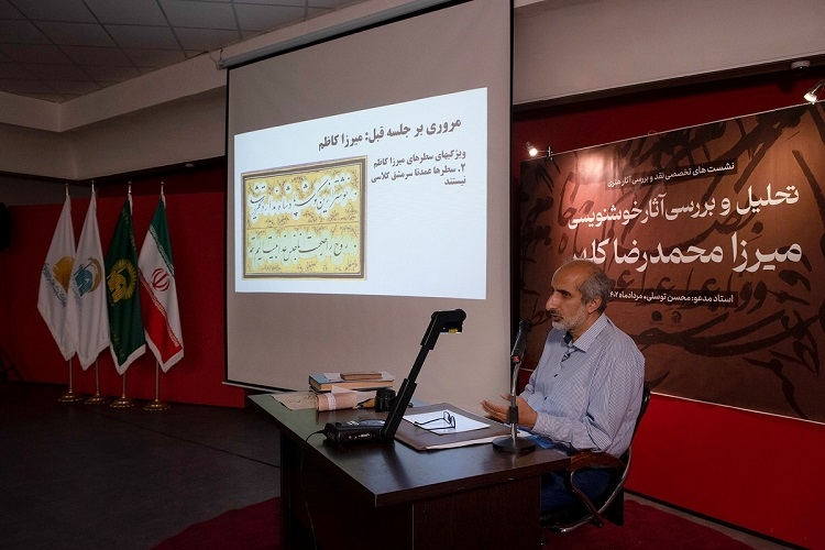 نشست تخصصی بررسی آثار خوشنویسی میرزا رضا کلهر توسط استاد محسن توسلی به همت موسسه آفرینشهای آستان قدس رضوی عصر روز پنجشنبه 19 مرداد ماه در نگارخانه رضوان برگزار شد.
