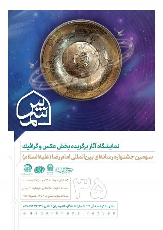 نمایشگاه آثار برگزیده بخش عکس و گرافیک سومین جشنواره رسانهای بینالمللی امام رضا(ع) با عنوان «شمس» در نگارخانه رضوان مشهد گشایش مییابد.