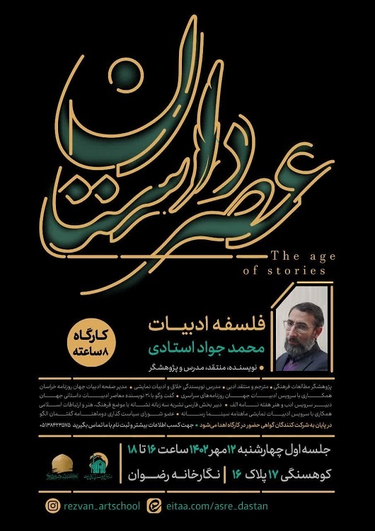 کارگاه فلسفه ادبیات با حضور محمدجواد استادی نویسنده، منتقد، مدرس و پژوهشگر مشهدی، به عنوان یکی از برنامههای انجمن داستاننویسی عصر داستان در مجموع در 8 ساعت در نگارخانه رضوان برگزار خواهد شد.