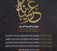 همزمان با ایام دهه آخر صفر ، ویژه برنامه غریبانه با حضور هنرمندان و شاعران برجسته استان وکشور در نگارخانه رضوان برگزار می شود.